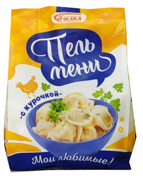 Состав: мука в/с, масло растительное, мясо птицы механической обвалки, филе бедра, шпик, лук репчатый, соль.
