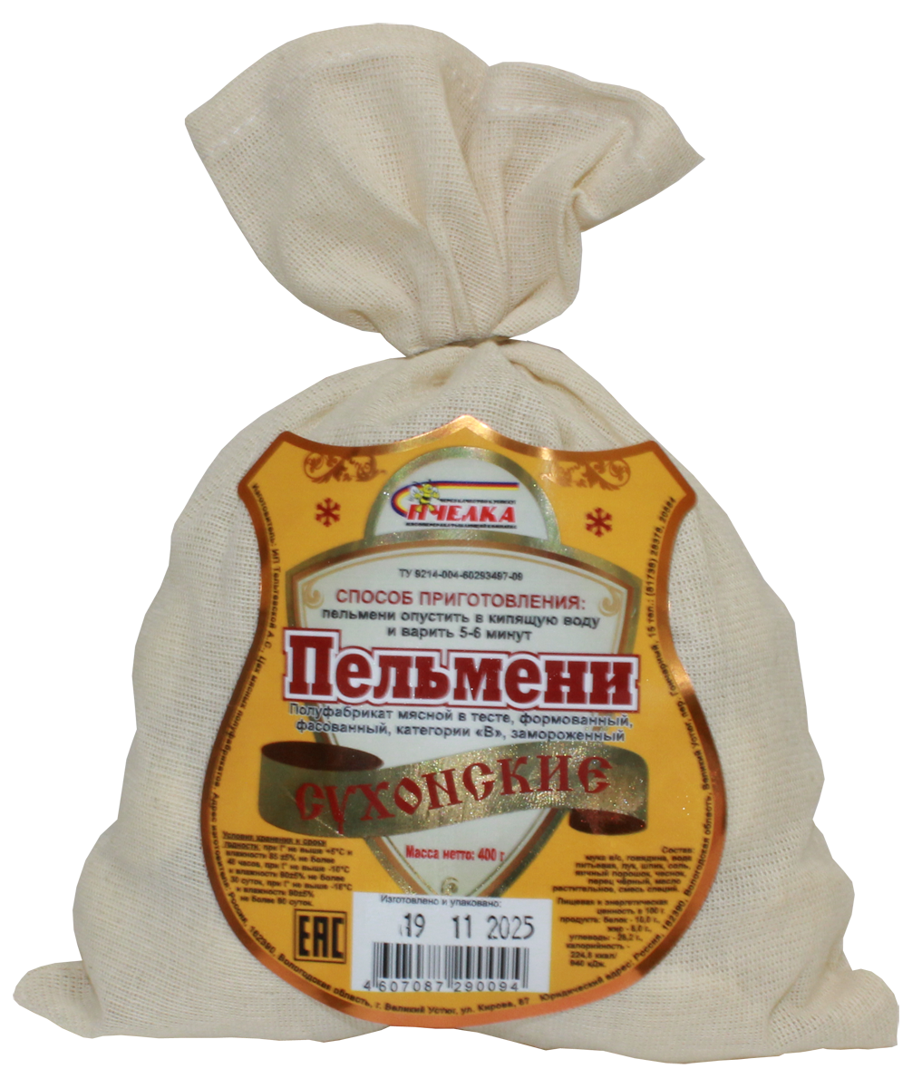 Состав: мука в/с, говядина, лук репчатый, шпик, соль, масло растительное, чеснок сушеный, смесь специй, перец черный молотый.