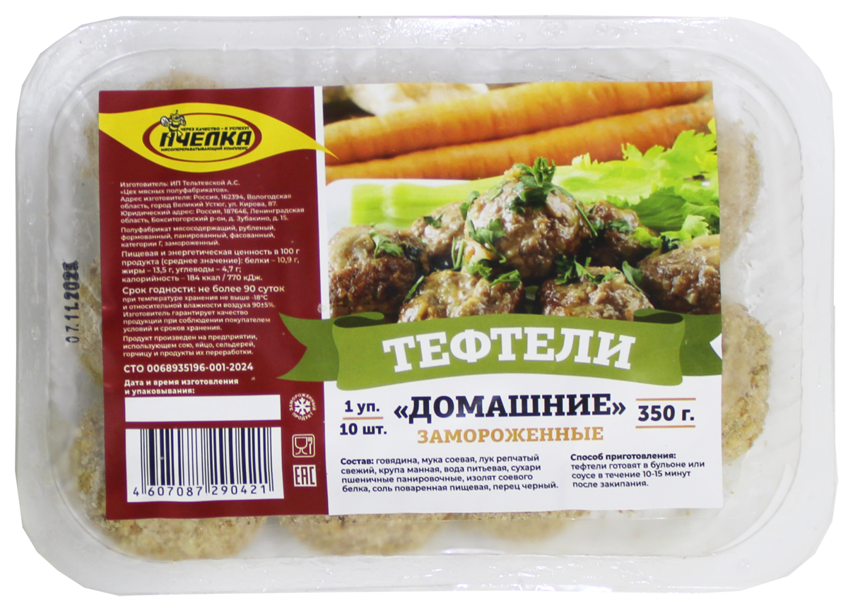 Состав: говядина, крупа манная, сухари панировочные, лук репчатый, соль, шпик.