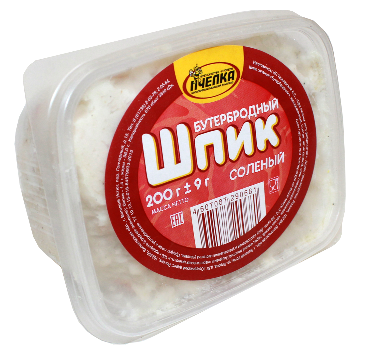 Состав: шпик свиной, соль, чеснок, перец черный молотый.